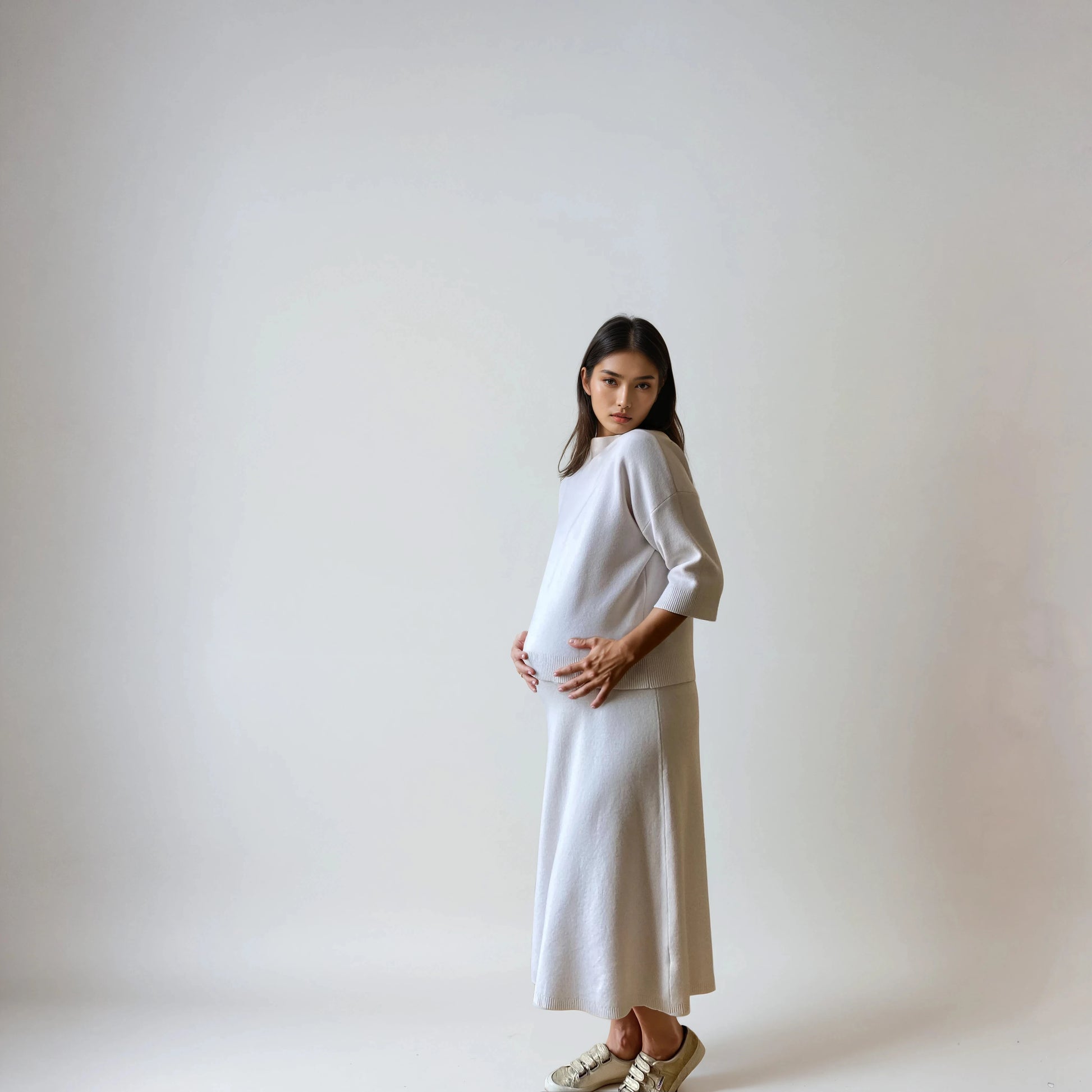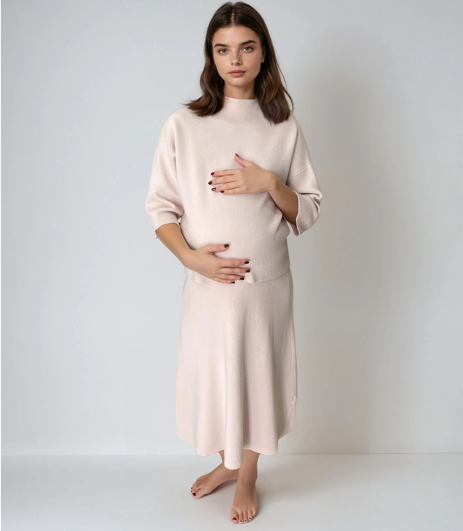 Discover the perfect combination of style and comfort with our maternity mesh skirt specially designed for expectant mothers. Made from a soft mesh fabric and stretchy, it will adapt to your growing belly while offering you timeless elegance. This skirt goes perfectly with the Côte d'Amour sweater! Regarding the ecru color, it is very slightly pink.