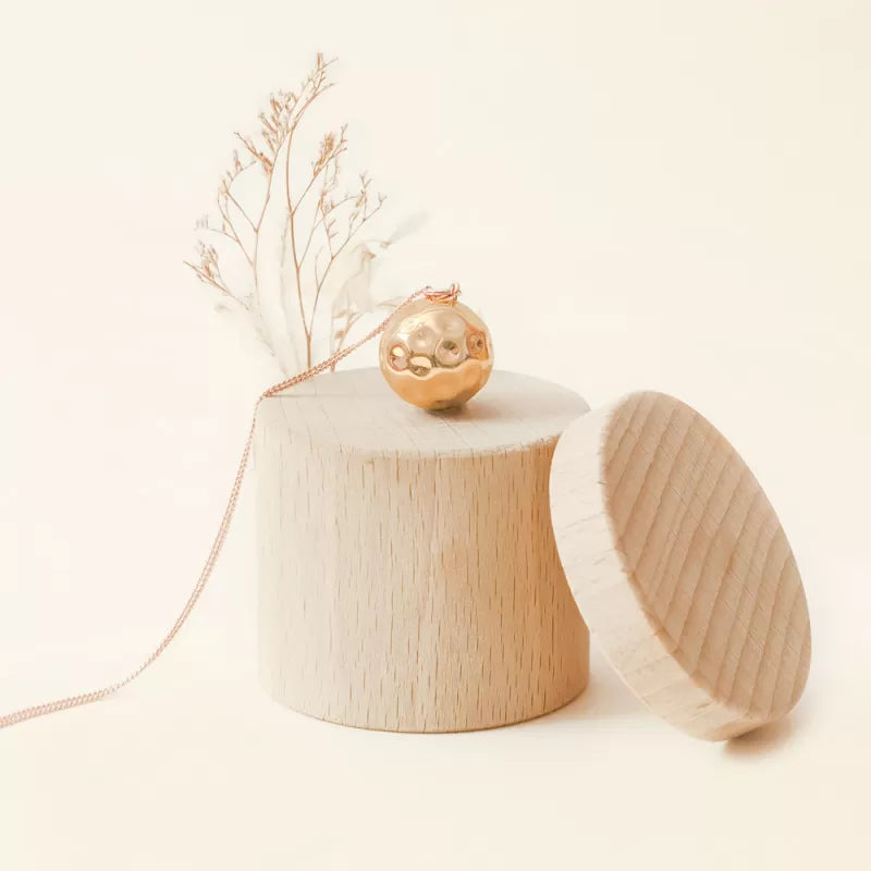 La sphère délicatement martelée de ce Bola d'exception évoque la lune, ronde et généreuse, symbole de fécondité et de féminité.