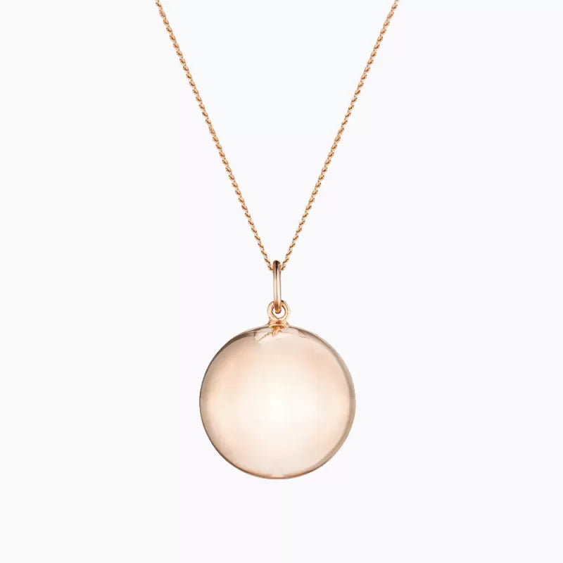 Sa sphère parfaite est joliment suspendue à une chaine.