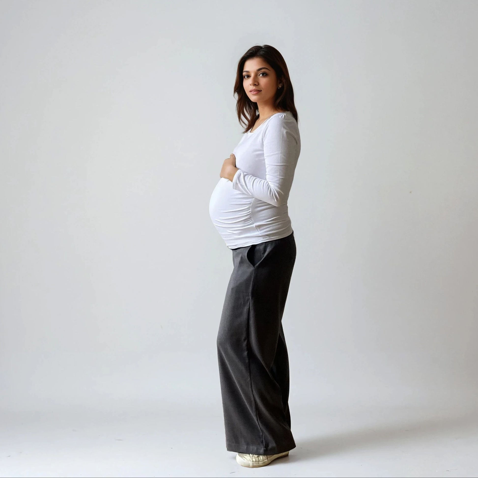 Le pantalon Eclipse de Neuvième Ciel combine élégance et confort à chaque étape de la maternité.
