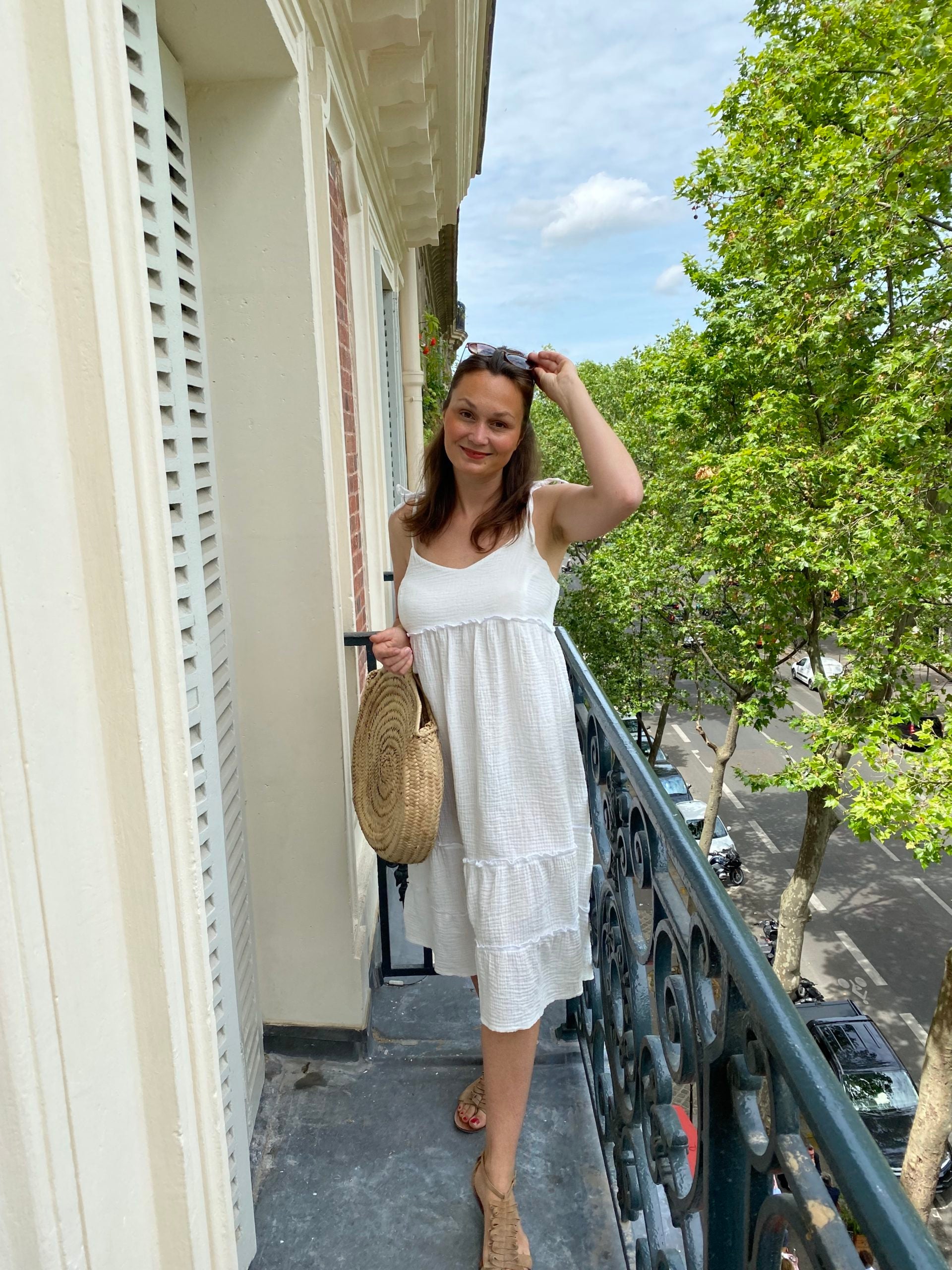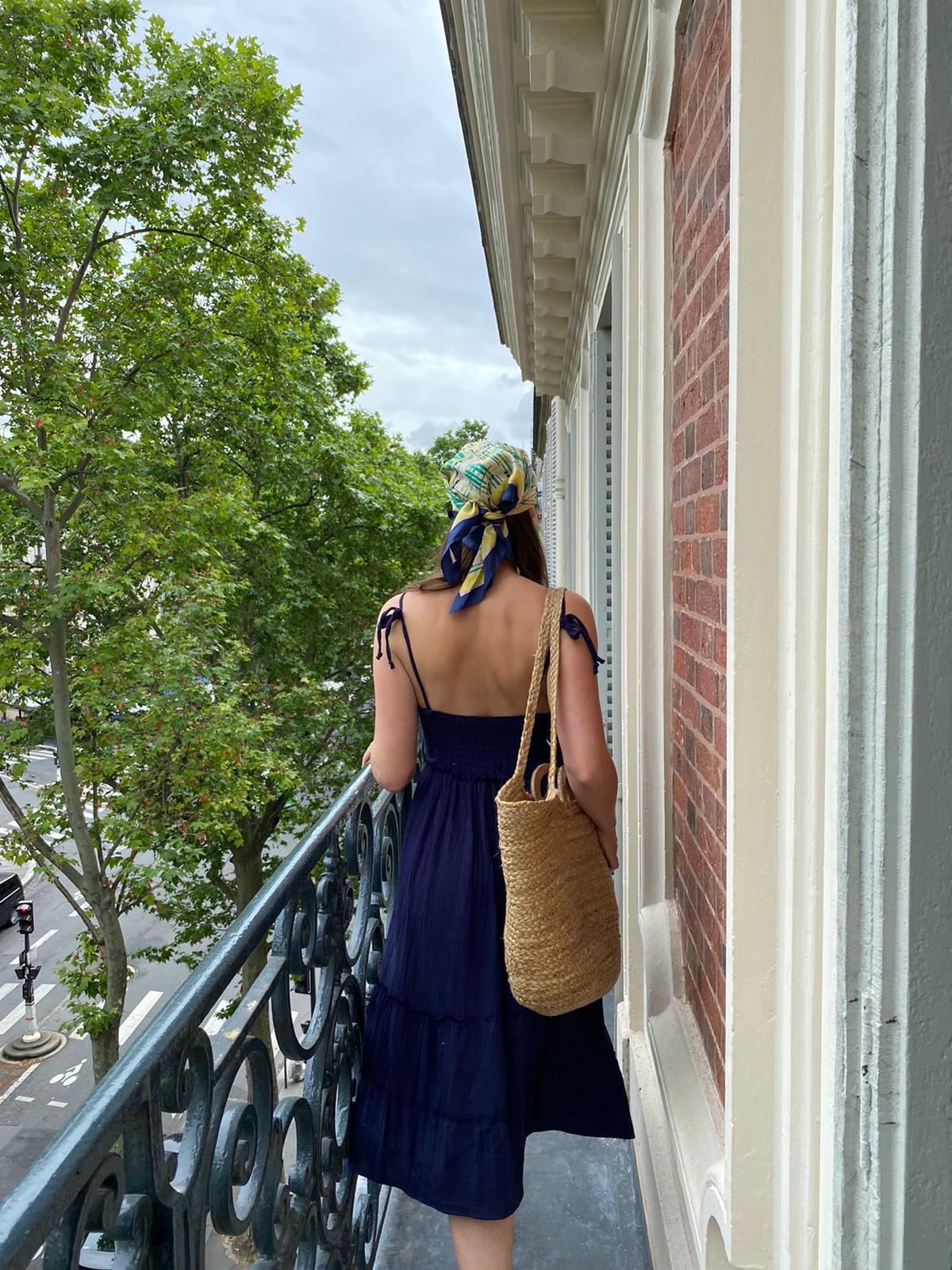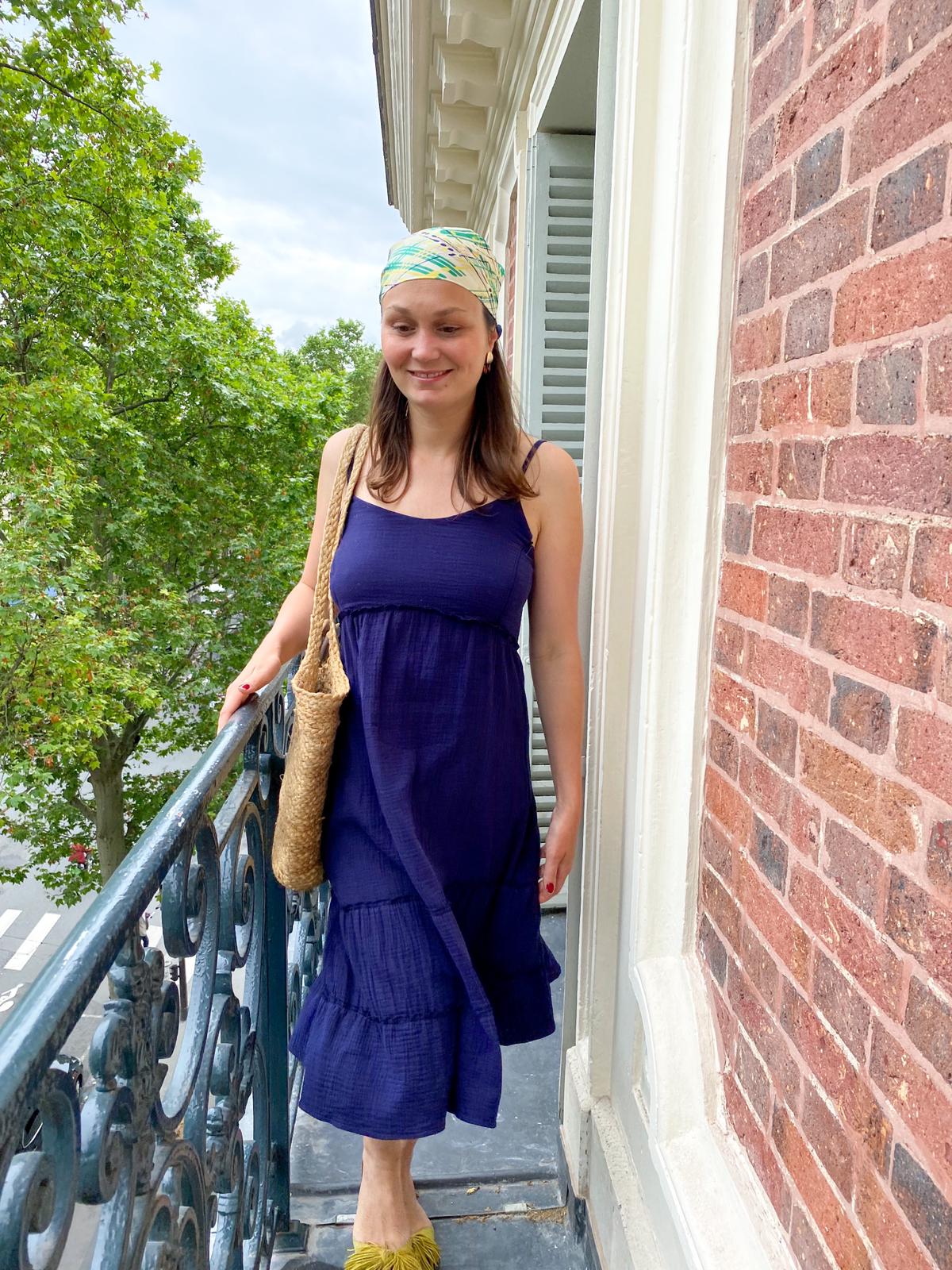 Cette robe avec ses nœuds sur les épaules qui lui donne un côté féminin et pratique, est la petite robe pure, légère, agréable à porter pour ces beaux jours.